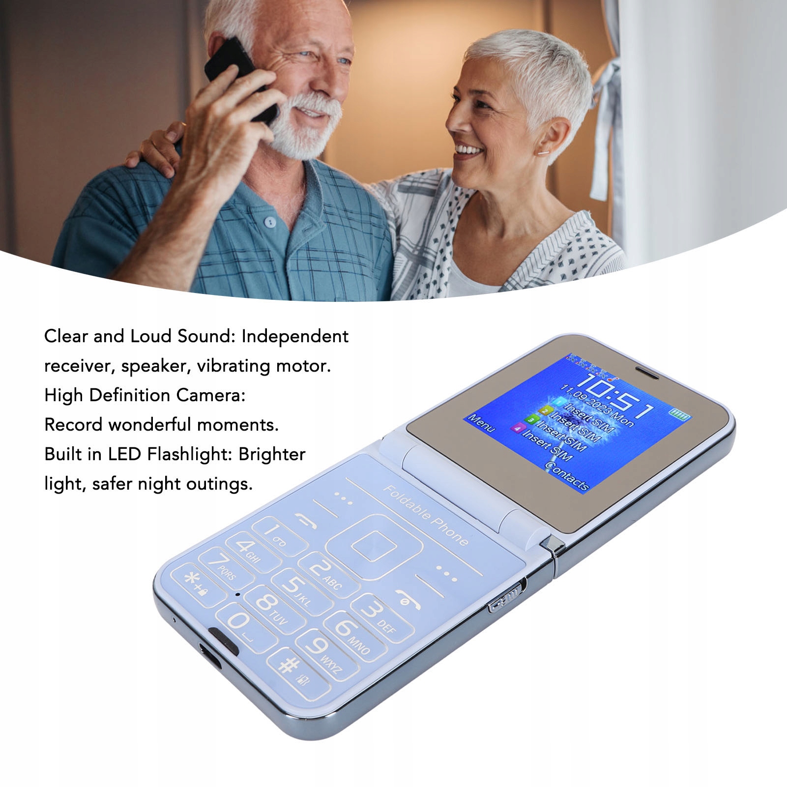 - Тип елемента: розкладний мобільний телефон для літніх людей