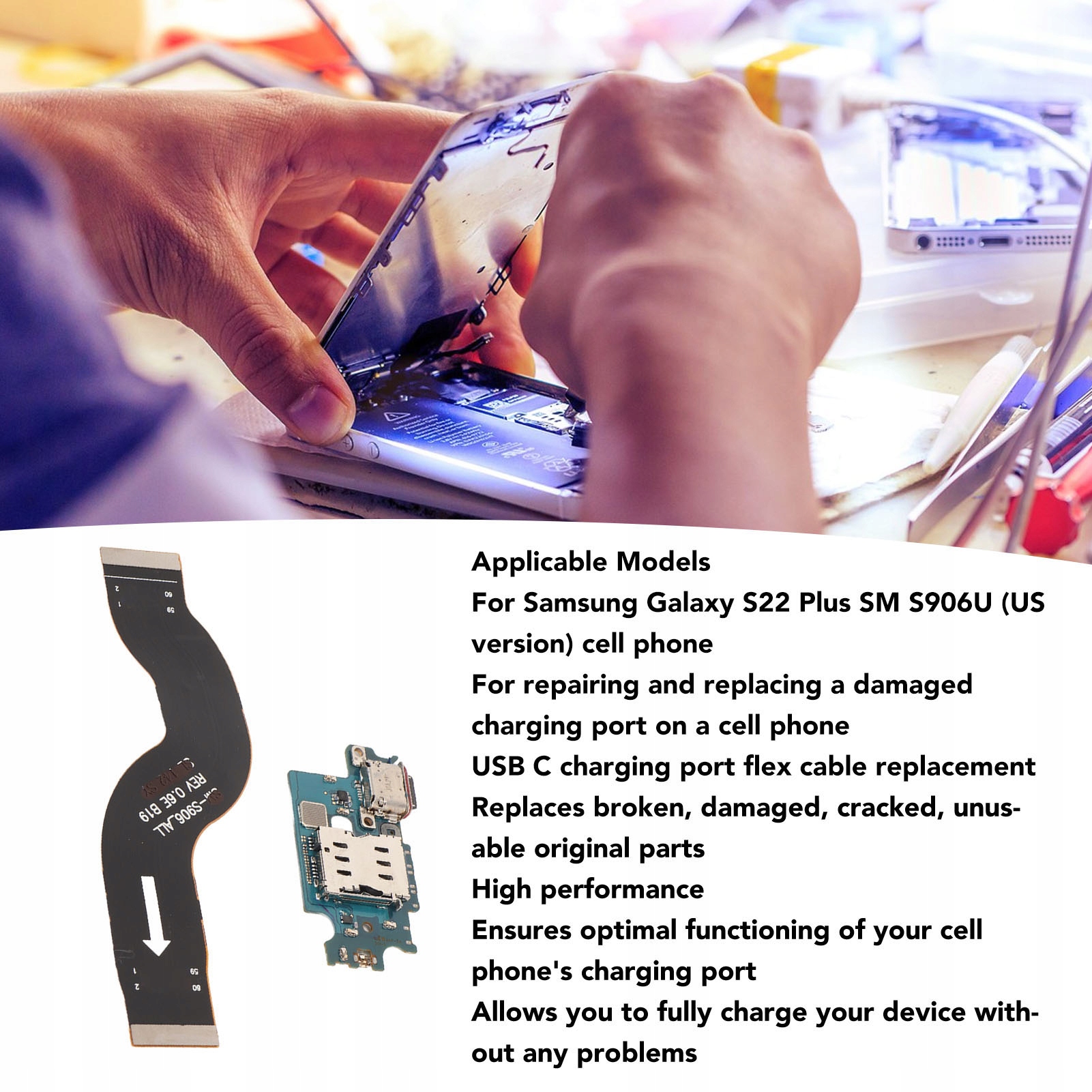 1. ВІДПОВІДНІ МОДЕЛІ: роз’єм док-станції порту зарядки мобільного телефону axy S22 Plus SM S906U (версія для США) призначений для ремонту та заміни пошкодженого порту зарядки телефону.