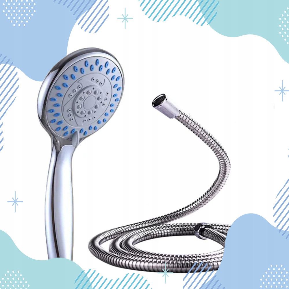 ДУШОВА СТРІЯ З РУЧКОЮ, ПОЛИЧКОЮ, НАРУЧНИКОМ І ШЛАНГОМ - ХРОМОВАНА, РЕГУЛЬОВАНА