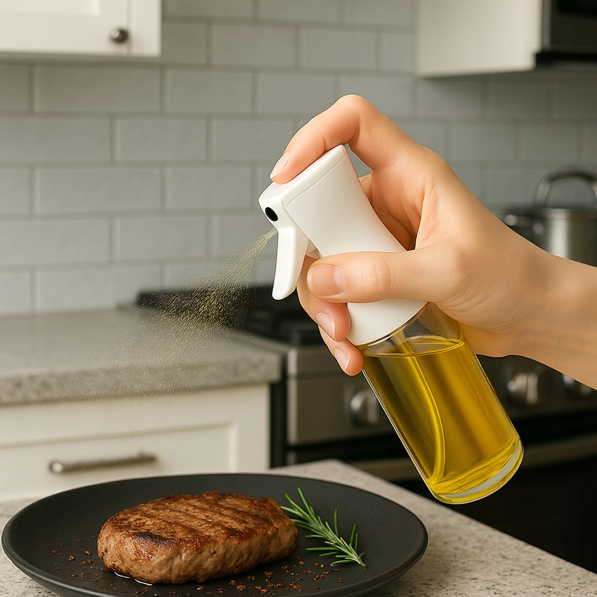 Наш розпилювач олії та оливкової олії 200 мл — це елегантний і функціональний гаджет, який полегшить ваше життя на кухні — незалежно від того, готуєте ви щодня чи лише в особливих випадках.