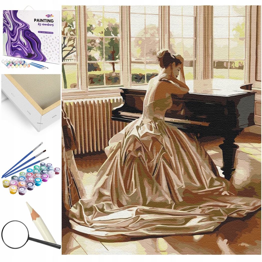 ПРИМІТКА: На цьому аукціоні продається набір для малювання за номерами Дівчина за піаніно 40x50 розмір 50x40 см НА РОЗТЯЖКАХ