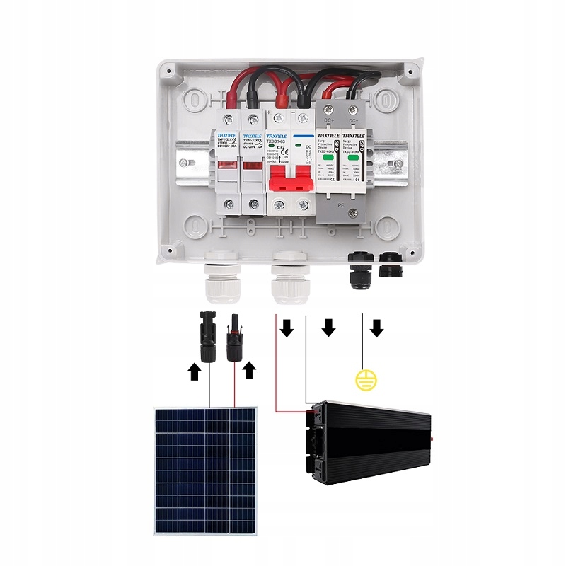 Захист ПВ -установки від перевантажень та коротких ланцюгів у фотоелектричних системах постійного струму постійного струму. Повністю провідний, готовий до підключення.