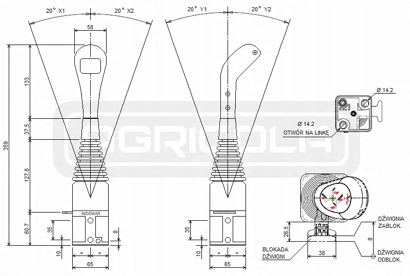 - 3-положення повзунків (1 - 0 - 2), на пружині, тобто повертаються в нейтральне положення самостійно після відпускання важеля.