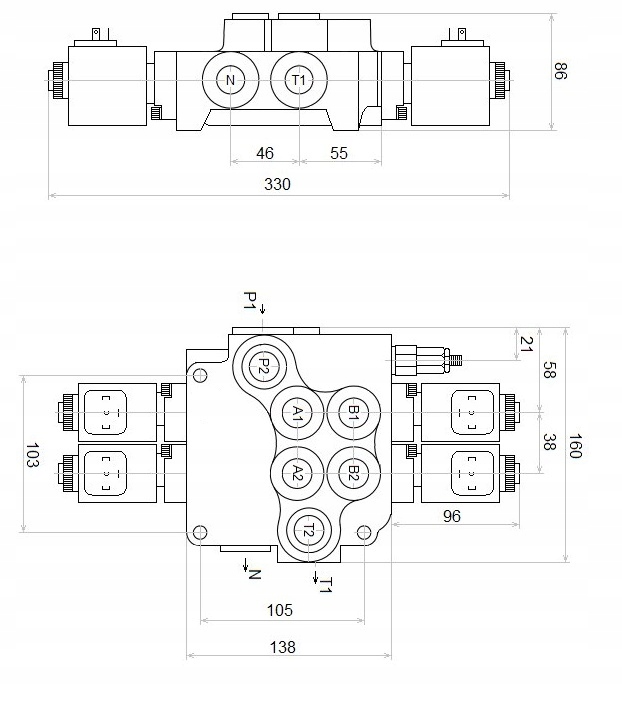 2-СЕКЦІЙНИЙ ГІДРАВЛІЧНИЙ РОЗПОДІЛЬНИК Z80, З ЕЛЕКТРИЧНИМ КЕРУВАННЯМ 24 В