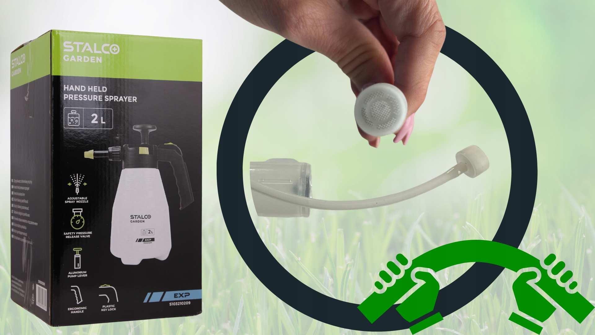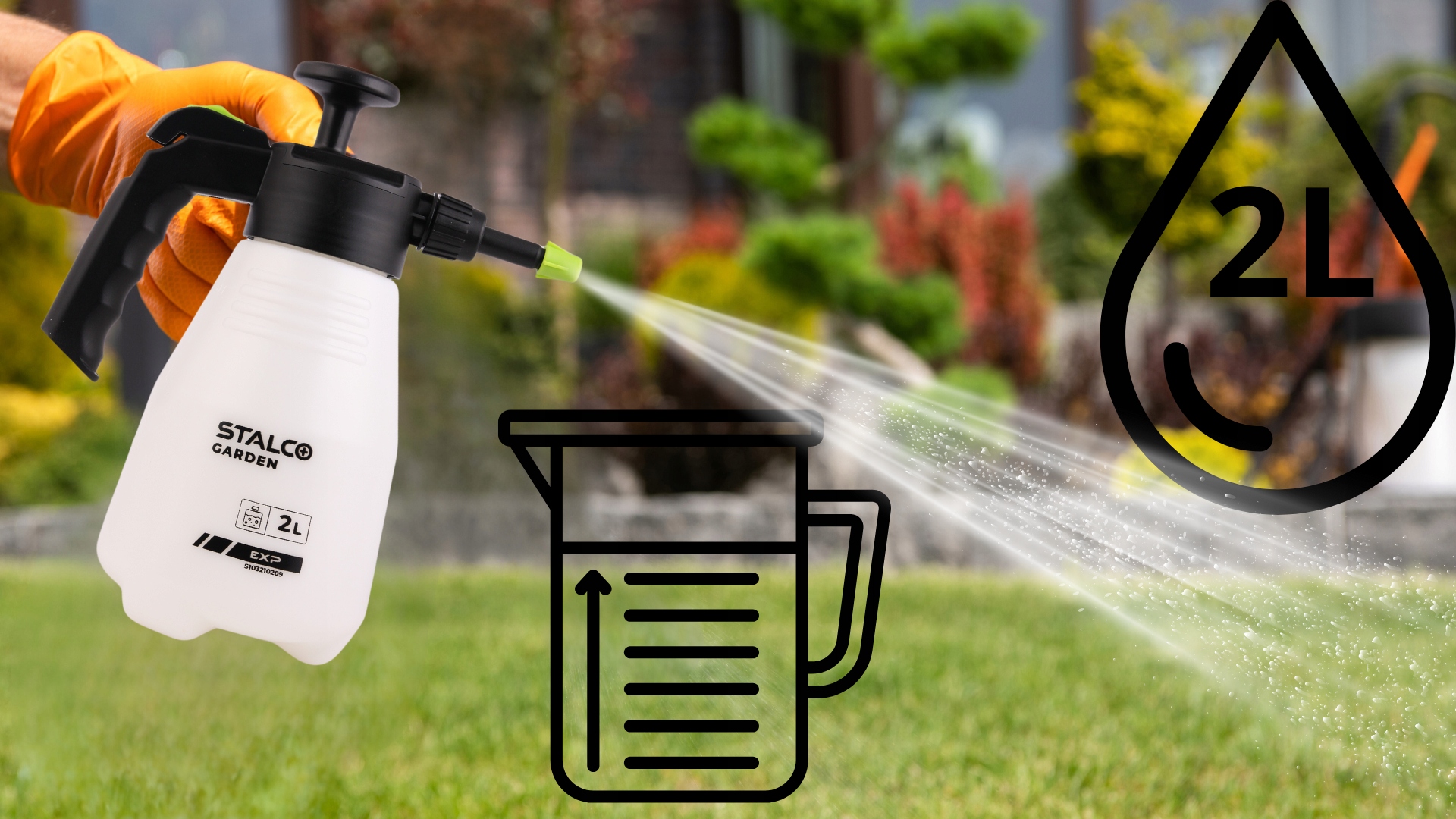 - ✅Ємність 2 л - ручний обприскувач під тиском з ємністю бака 2 л