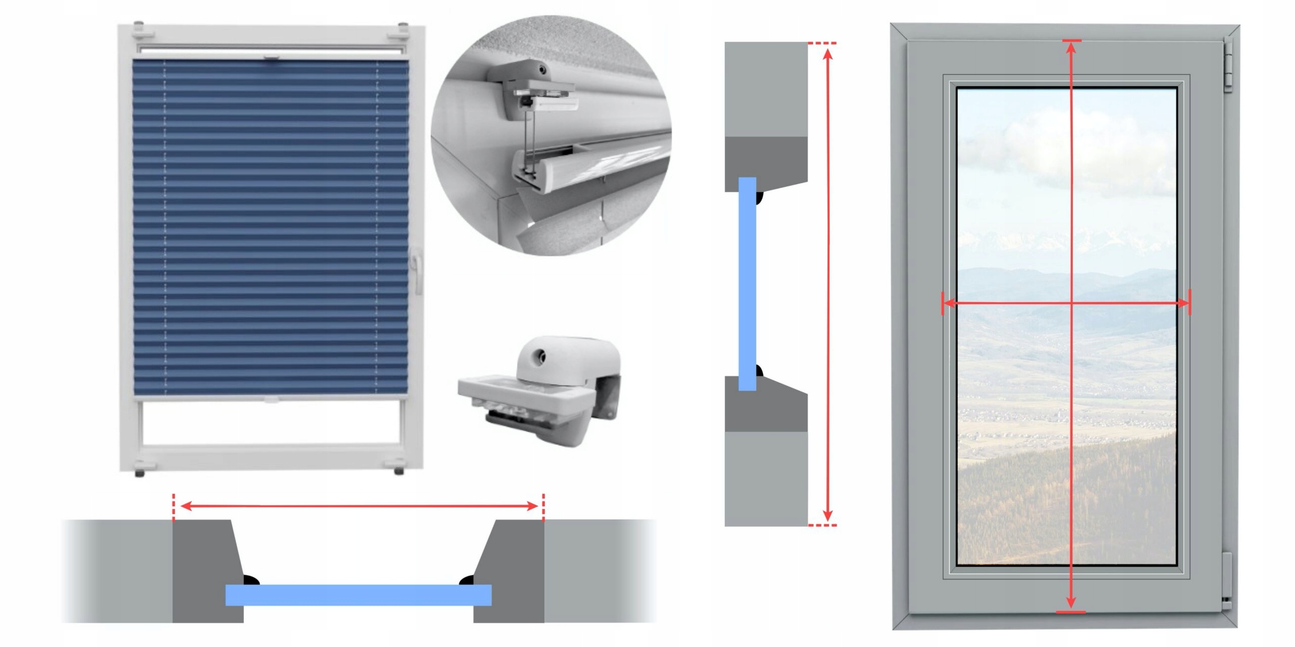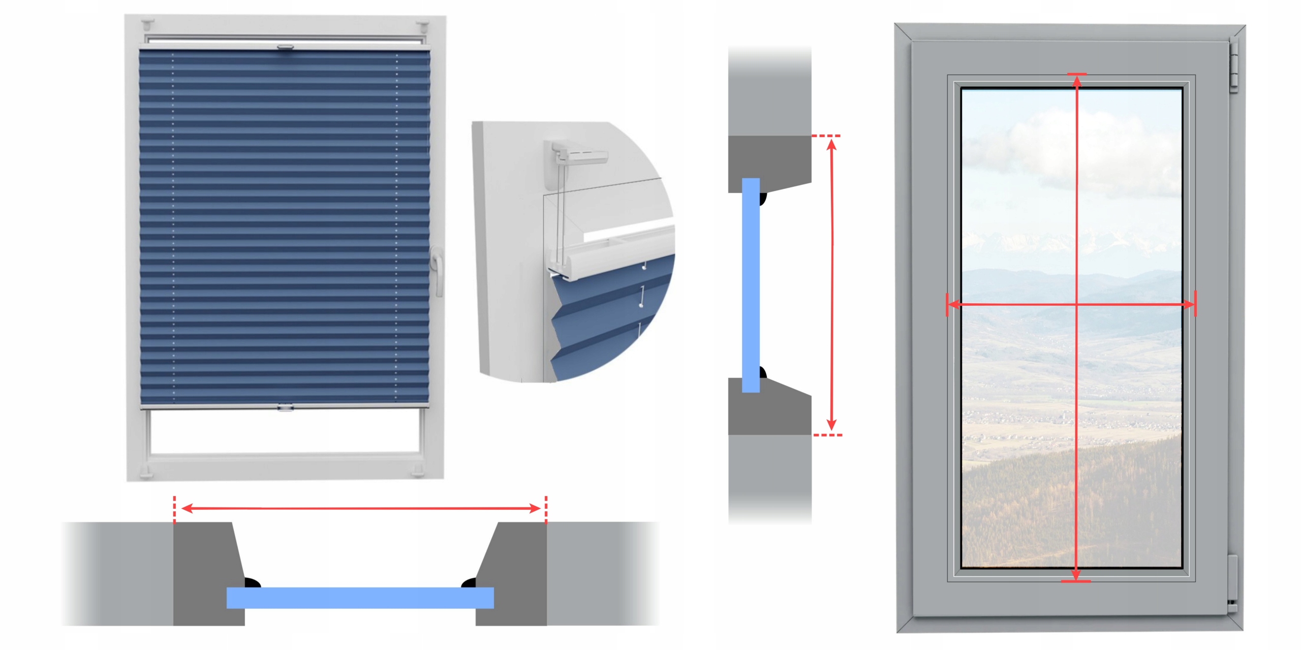 - Вказана ширина буде зовнішнім розміром складки. До заданої висоти плісе ми додамо висоту ручок, щоб вони були встановлені над штапиком (на плоскій, стійкій частині віконної рами).