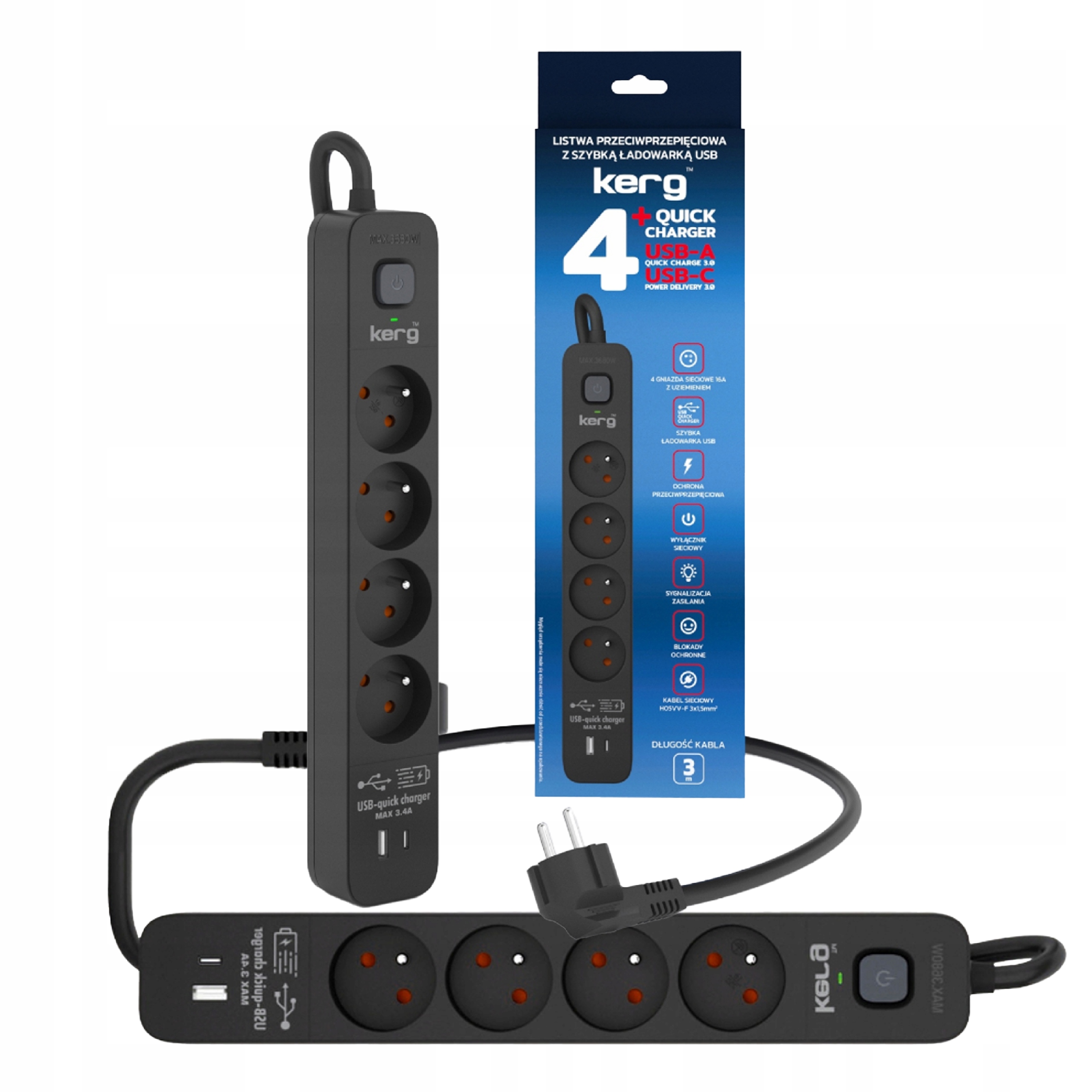 Стрижка Kerg відрізняється якістю та доглядом. Він має 4 стандартні розетки та 2 порти зарядки USB , саме тому він дозволяє одночасно заряджати до 6 пристроїв. Крім того, він забезпечує високий рівень захисту від перенапруг (до 16 а)!