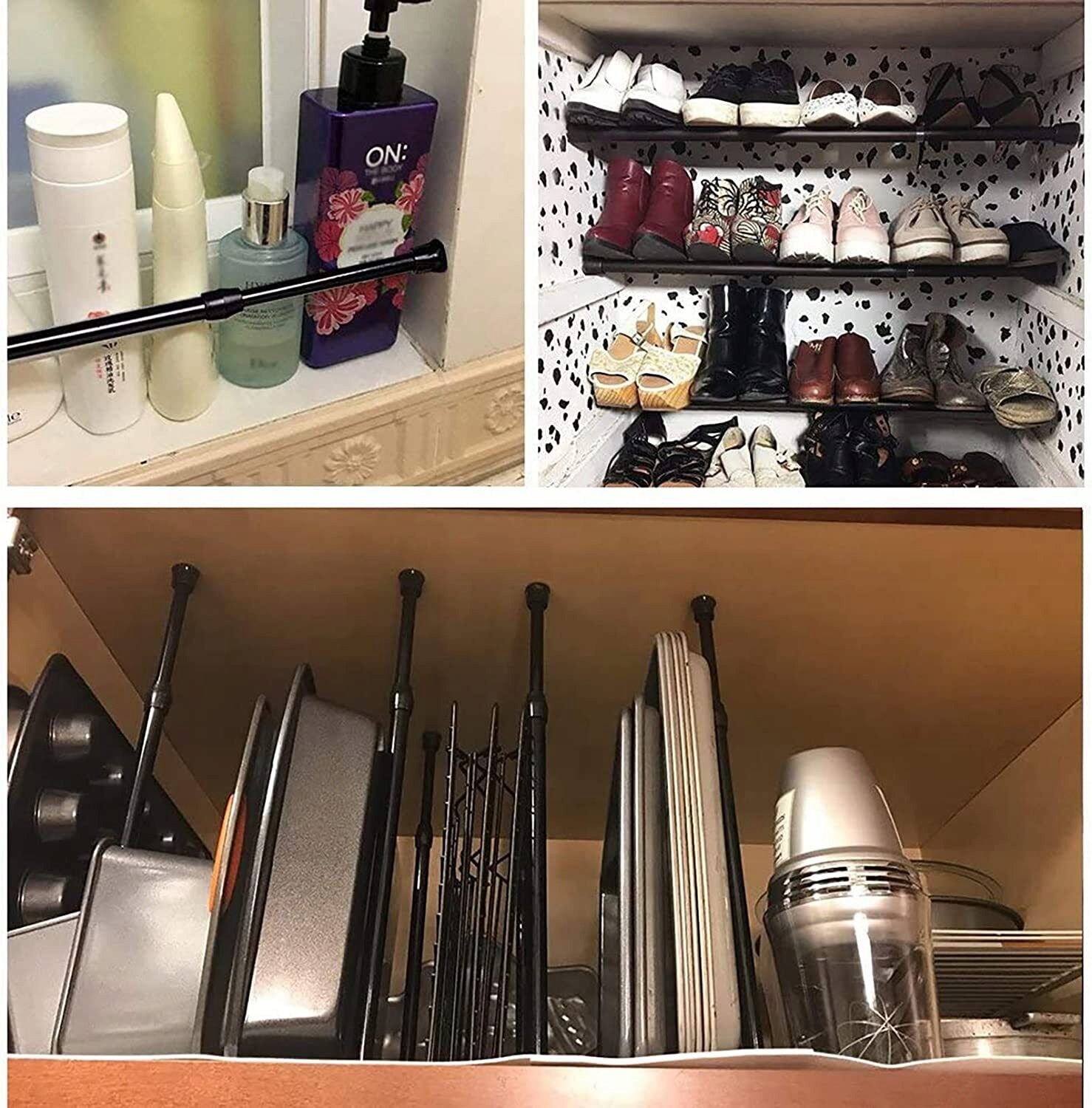 ⭐ ШИРОКЕ ЗАСТОСУВАННЯ:Короткі регульовані натяжні стрижні, придатні для легких, ідеально підходять для дверей від підлоги до стелі, шафи, дверей і стрижень для вікон, вішалка для одягу, стрижень для сушіння, щоб упорядкувати речі.