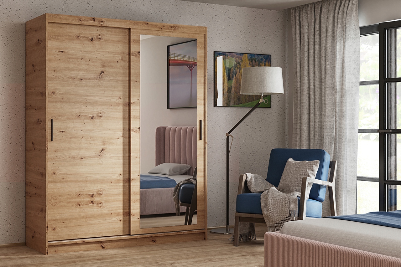 Шафуючий гардероб з дзеркалом у модному кольорі Aristan Oak.