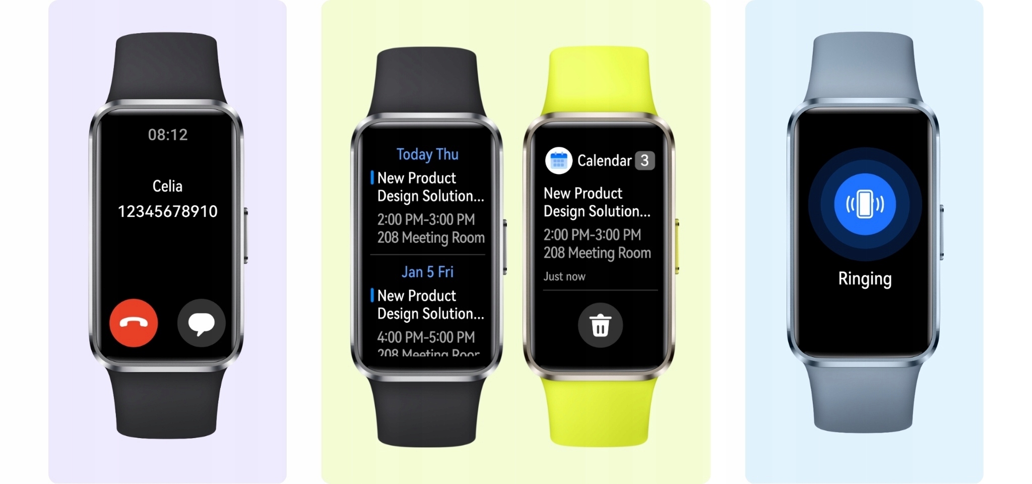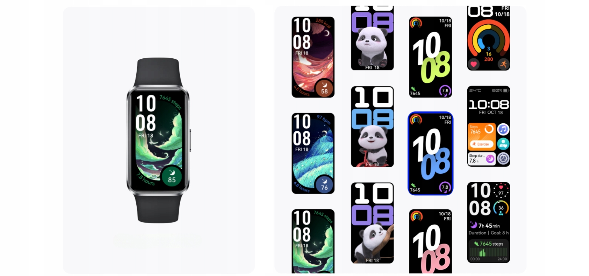 Розумний браслет HUAWEI Band 10забезпечує найвищий рівень комфорту - його товщина всього 8,9 мм і вага всього 14 г (без ремінця). Ви не відчуєте ніякого дискомфорту, навіть якщо будете носити його весь день або під час сну. Злегка закруглені краї дозволяють ремінцю ідеально прилягати до зап’ястя, забезпечуючи повний комфорт. Чіткий AMOLED-дисплей діагоналлю 1,47 дюйма з роздільною здатністю 368 x 194 пікселів забезпечує легкий доступ до всієї інформації, а ультравузька рамка навколо нього підкреслює сучасний дизайн. Яскравість циферблата ремінця автоматично регулюється відповідно до навколишнього середовища, забезпечуючи оптимальну видимість і приємні відчуття для очей.