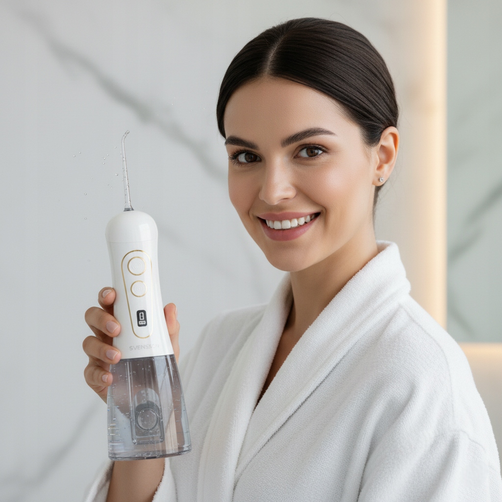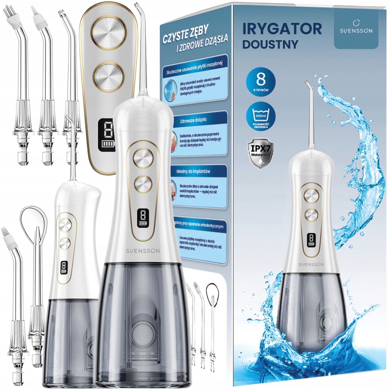 Професійне зрошення порожнини рота може ефективно видалити до 99,9% зубного нальоту, залишків їжі та бактерій, які можуть спричинити запалення та карієс. Іригатор Svensson був розроблений у співпраці зі стоматологами для забезпечення максимальної ефективності та зручності використання. Апарат пропонує 8 точно підібраних режимів роботи, адаптованих до різних потреб - від ніжного масажу ясен до інтенсивного очищення проміжків між зубами.