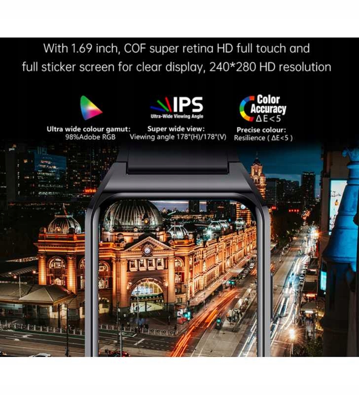 - Дисплей MULTIdotyk TFTПовноцінний круглий дисплей IPS!1,69 ”