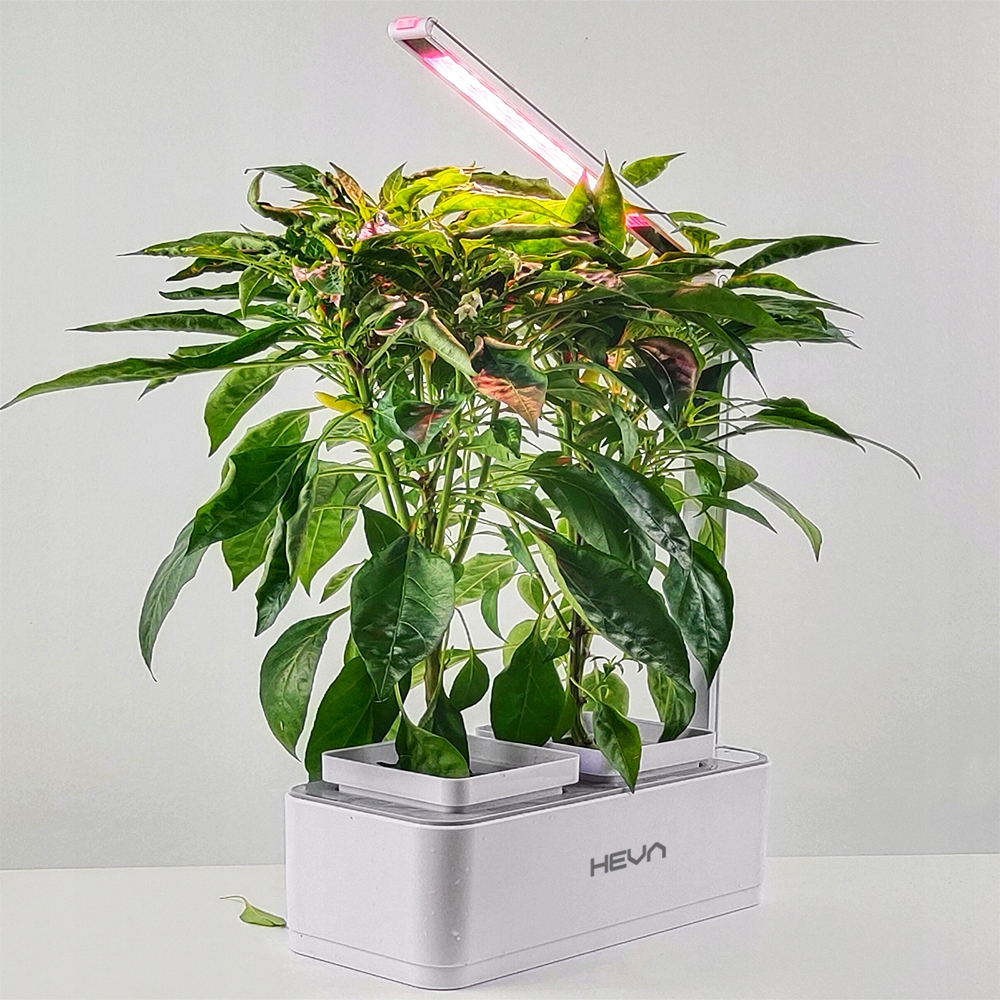 Гідропонний горщик HEVA LIF оснащено підтримкою росту рослин лампою, яка може працює в двох режимах: