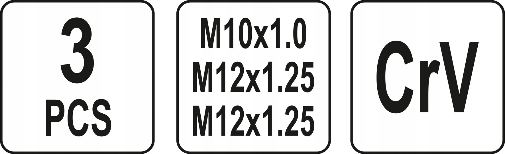 - Розміри: M12 x 1,25 x 59 мм, M12 x 1,25 x 94 мм і M10 x 1 x 107 мм