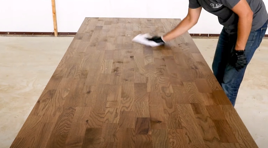 Поверхня, захищена маслом монокоруків Rubio Plus 2C, на маслі показано високу стійкість до води та тепла , що робить його ідеальним для обробки деревини, що використовується в кухні або ванній кімнаті