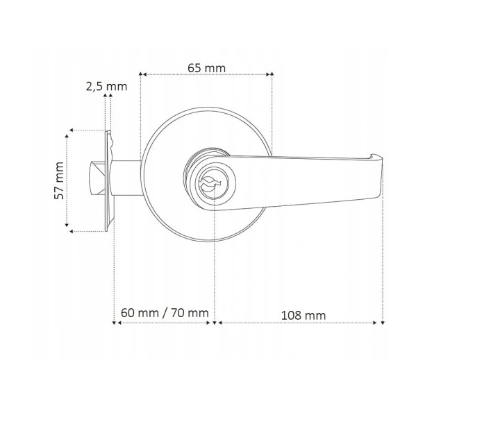 ручка дверей із заощаджувальним замком, замкненим зовні, і з ручкою (замком) зсередини.