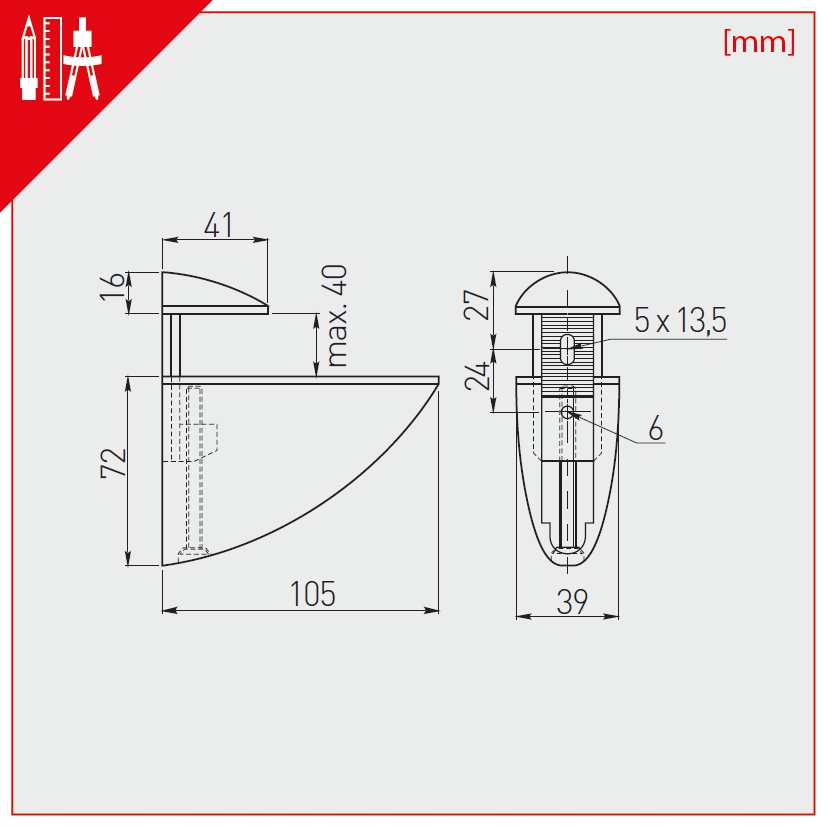 РУЧКА СКЛЯНА, ХРОМІрована ОПОРА ПОЛИЦІ