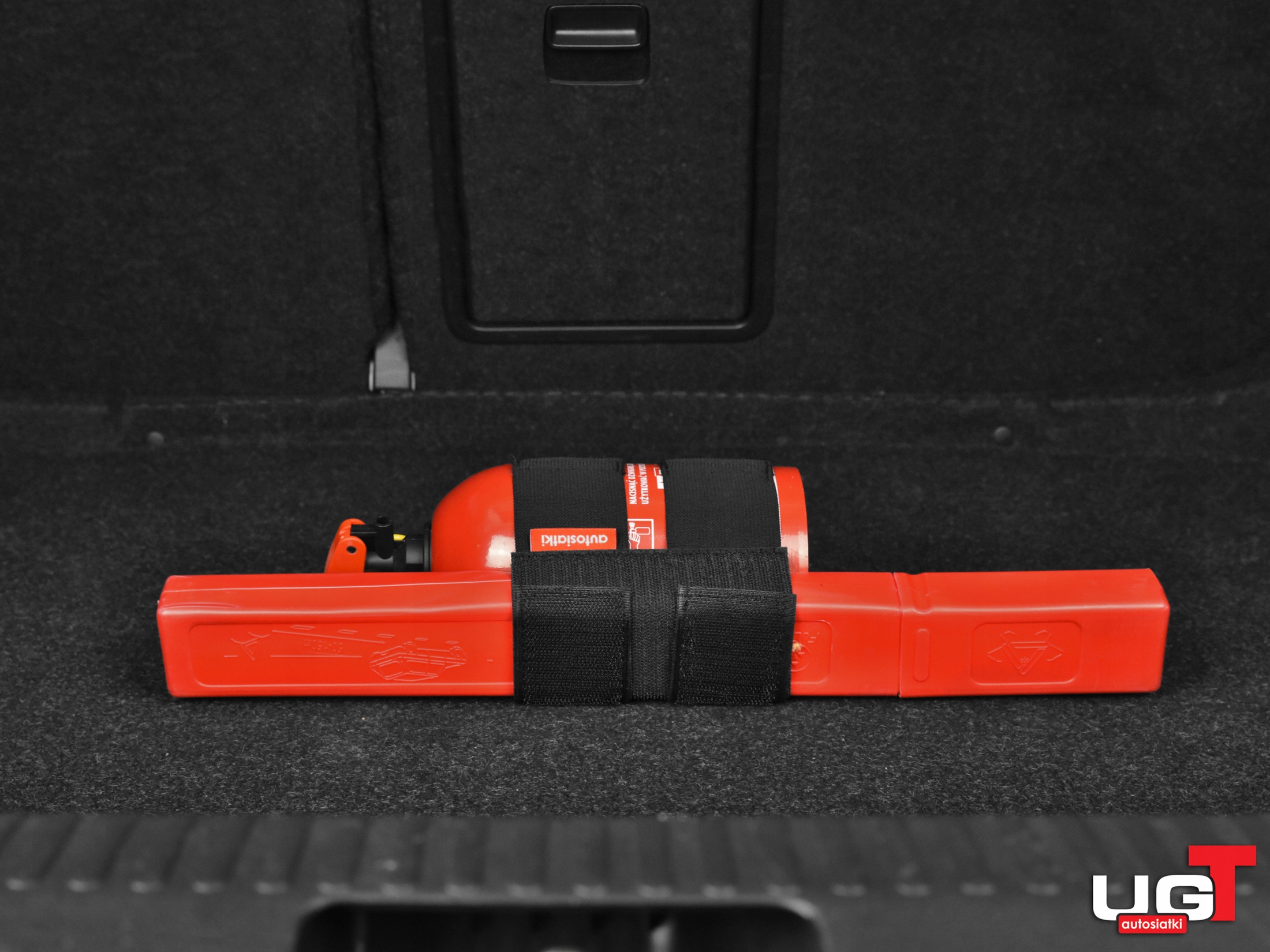 Велика поверхня Velcro забезпечує ідеальне утримання транспортованого вогнегасника та трикутника.