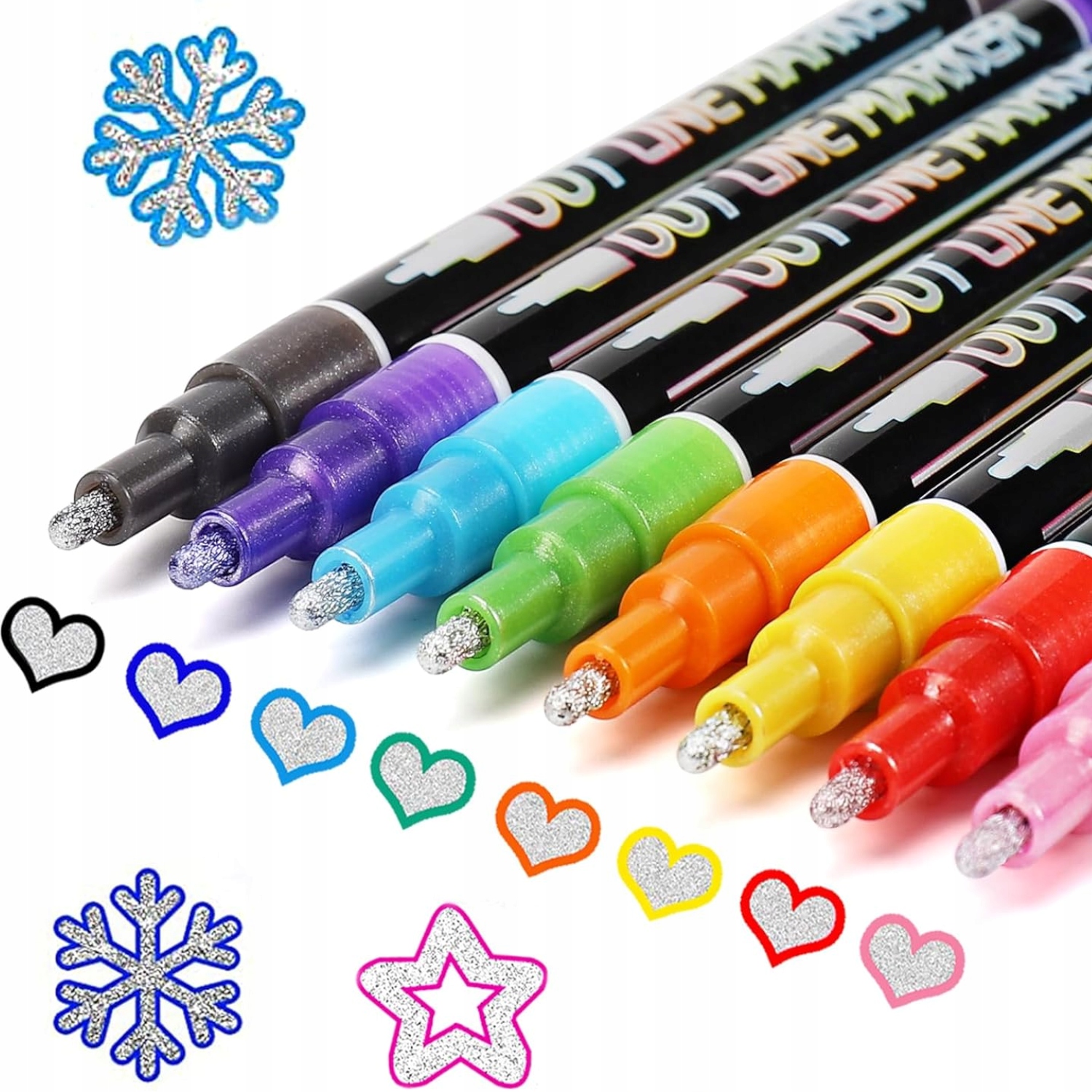 РУЧКИ ГЛІТТЕРНІ АКРИЛОВІ МЕТАЛЕВІ МАРКЕРИ ДВІ ЛІНІЙНІ 8ШТ.