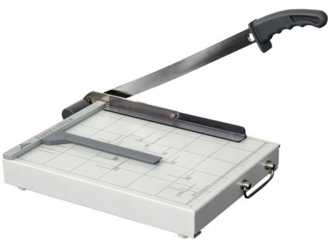 Суцільна офісна гільйотина з автоматичною системою тиску паперу, великим робочим верхом із шаблонами різних форматів. Гільйотина має довге ріжуче лезо, виготовлене із загартованої сталі та безпечної ручки. Довге лезо дозволяє вирізати формат A3 на короткій стороні!