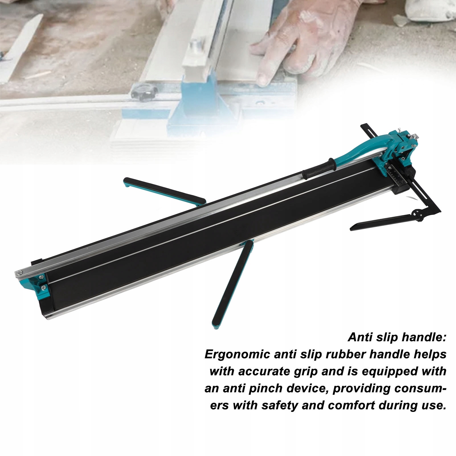5. СТАБІЛЬНА ОСНОВА: широка та товста сталева основа, нековзка гумова накладка та рухома подовжувальна ніжка забезпечують стабільну роботу під час різання великої керамічної плитки товщиною до 1200 міліметрів.