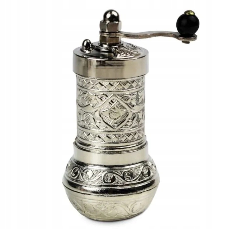 Кавомолка прикрашена деталями, вигравіруваними вручну, які надають їй унікальний характер. Незважаючи на те, що він традиційно використовується для помелу кави, він також ідеально підходить для помелу спецій.