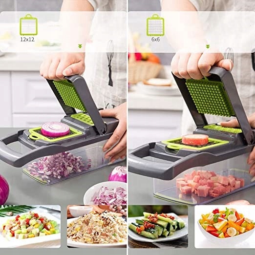 ✅ Ви можете швидко та ефективно нарізати продукти на маленькі чи великі кубики, четвертинки, скибочки, смужки чи палички. Приготування смачного супу чи приготування салату займе лише мить.