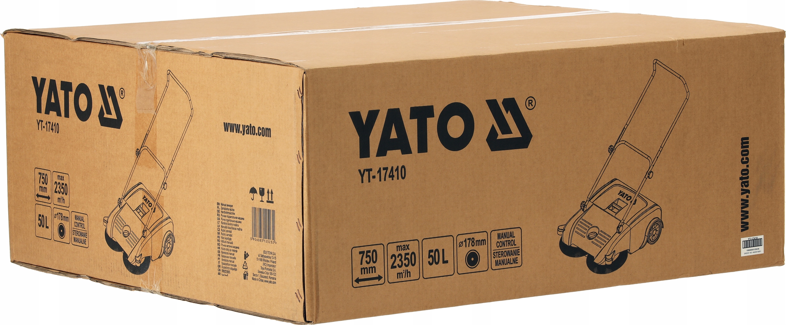 Ефективна ручна підмітальна машина YATO, призначена для швидкого та ефективного прибирання великих площ без використання електроенергії та палива.