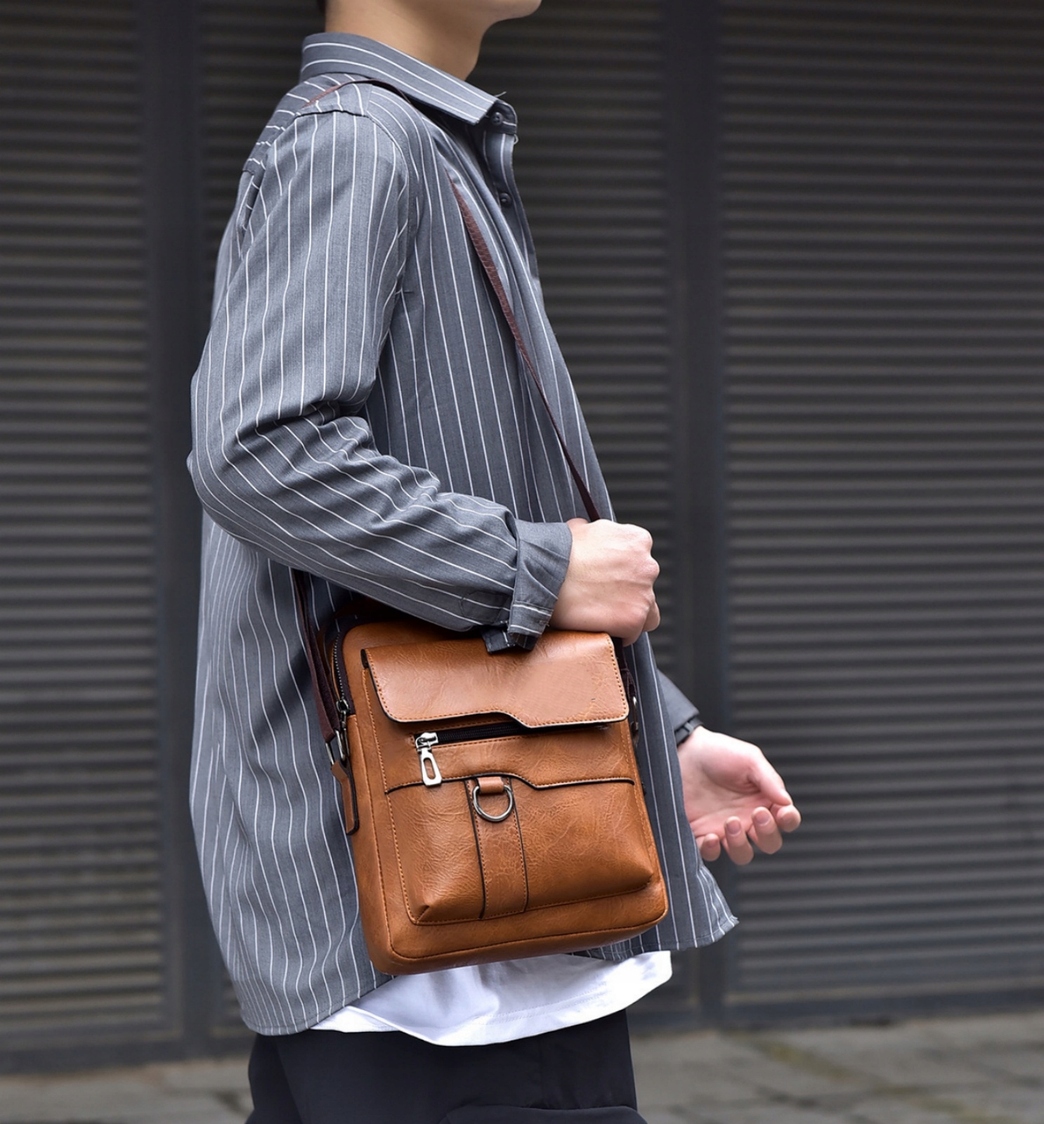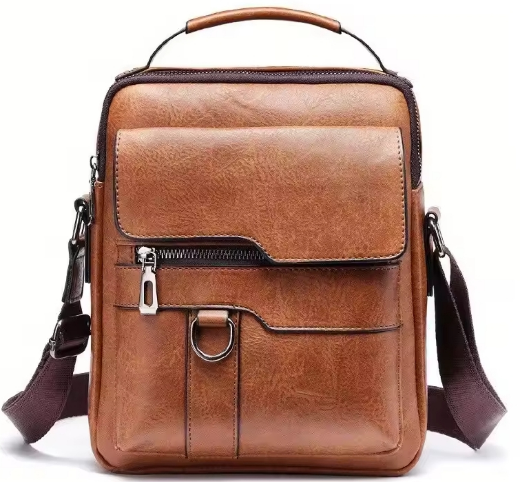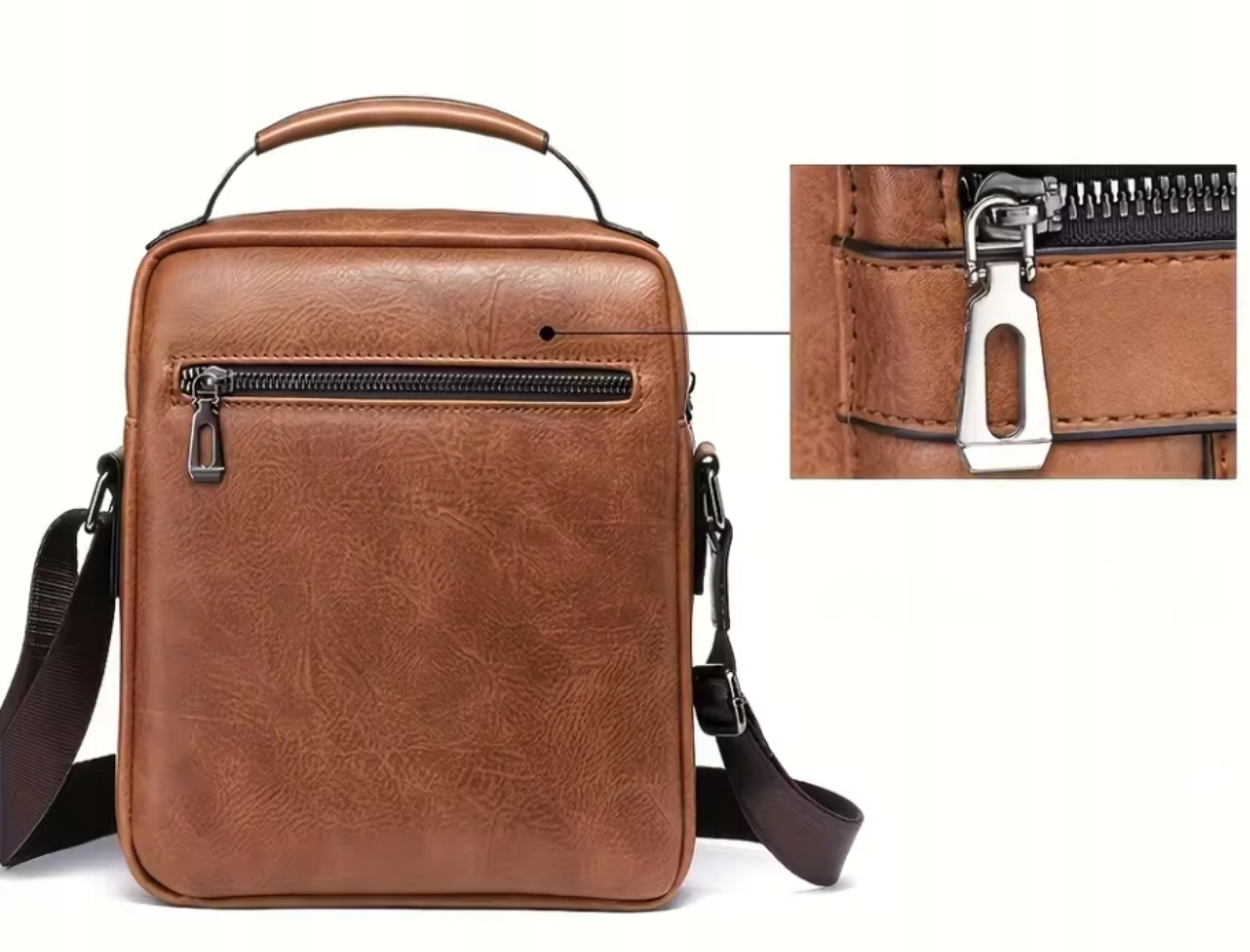 Чоловіча шкіряна сумка для плеча виготовлена з високоякісної штучної шкіри, міцної підкладки для тканини, міцних блискавок та аксесуарів. Елегантний дизайн, ідеальна майстерність, делікатний дотик.