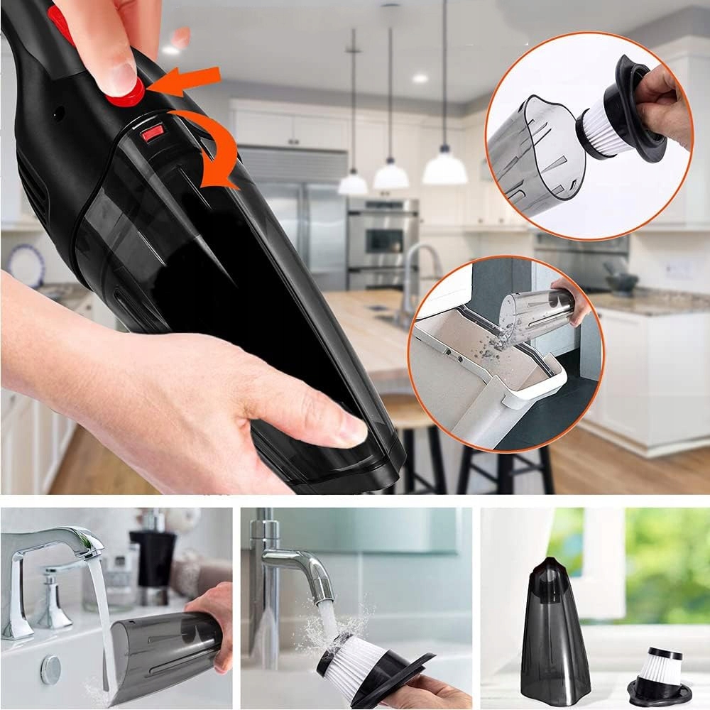 Цей ручний пилосос оснащено фільтром HEPA, який можна мити, який може ефективно запобігати адсорбції пилу на сітці фільтра та підтримувати високу потужність всмоктування для підвищення ефективності очищення. Після використання його можна розібрати та повторно використати для прання.