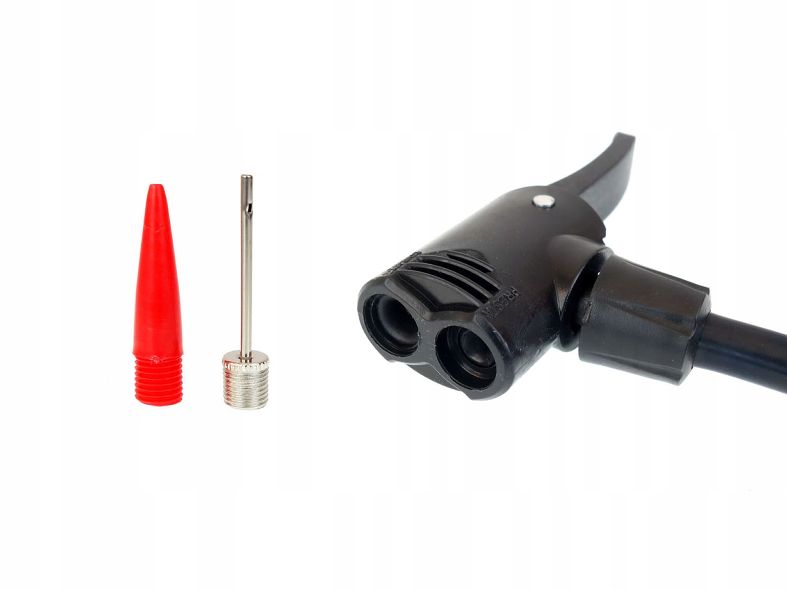 Надійний ручний насос із максимальним тиском 11 БАР / 160 PSI. Має подвійну універсальну головку для автомобільних і велосипедних клапанів. Додатково в комплект входить адаптер і голка для накачування матраців, м'ячів, надувних іграшок і т.д.