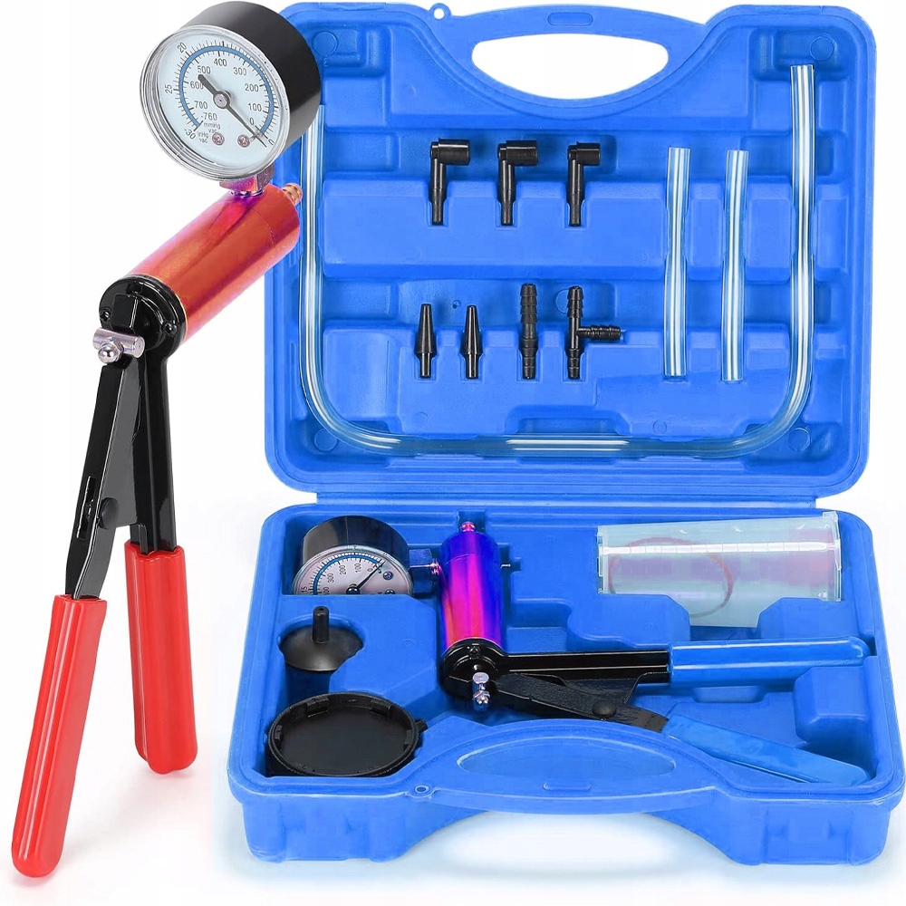 Цей ручний набір для прокачування гальм дає змогу прокачувати гальма, перевіряти значення негативного тиску за допомогою манометра та качати масло , рідини для гідропідсилювача керма та інші рідини, його можна використовувати в гальмах і колісних супортах/циліндрах зчеплення. Основний або допоміжний насос. Щоб вимити стару гальмівну рідину та повітря та заповнити всю гальмівну систему новою рідиною.