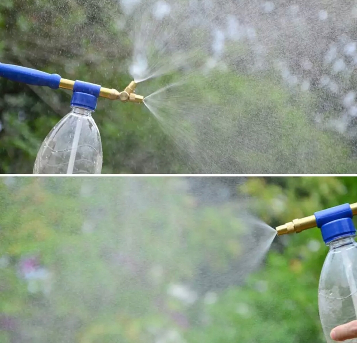 Ручний розпилювач під тиском з регульованою латунною насадкою для універсальної пляшки. За кілька секунд він перетворює пляшку (наприклад, мінеральної води) на розпилювач. Ідеально підходить для садівництва, домашніх і майстерень, гаражів і сараїв. Можна використовувати для прибирання та дезінфекції, а також для обприскування та проведення обробок захисту рослин. Сумісний з більшістю ПЕТ-пляшок різної ємності.