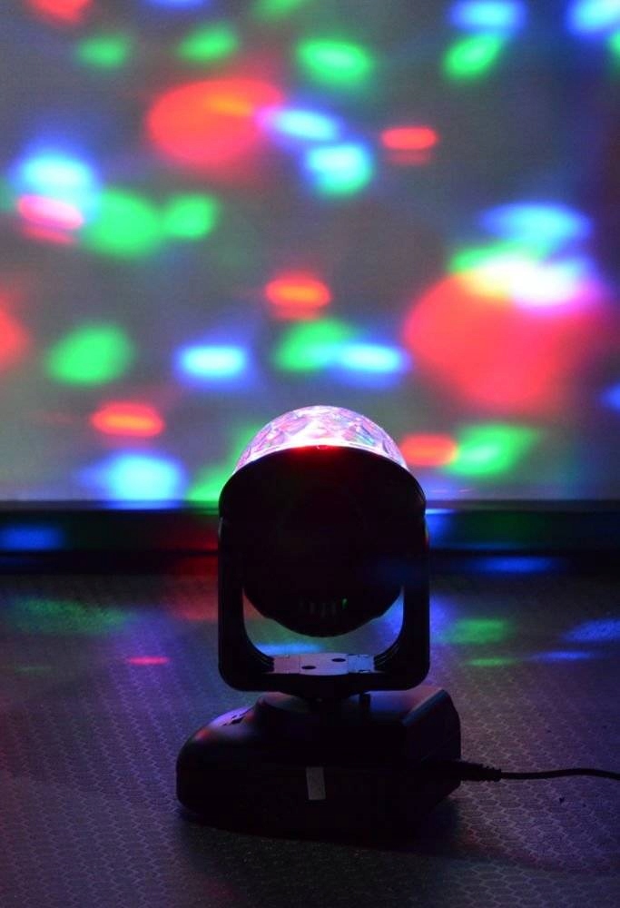 Промені світла сильні, а кольори чіткі. Легкий прожектор із легким керуванням ідеально підходить для обладнання ді-джеїв та аніматорів, а також для освітлення невеликих кімнат, танцполів, дискотек тощо.