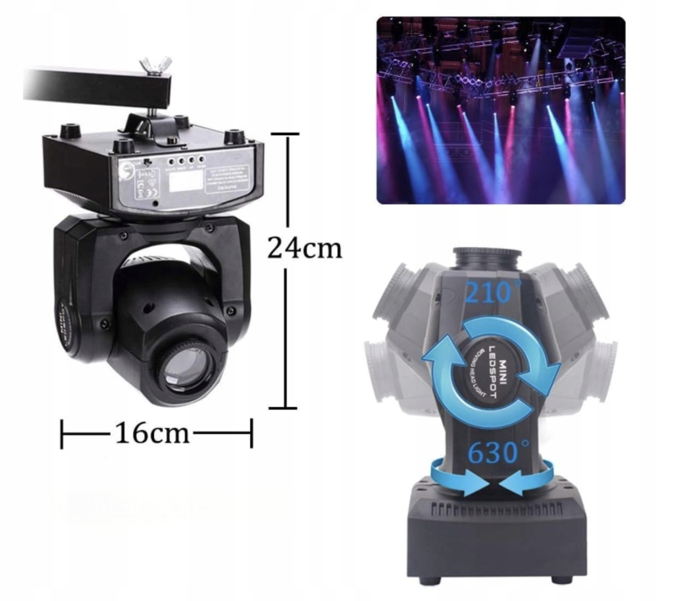 кут сканування дискотеки - 630 °, швидкість можна керувати; Вертикальний кут - 210 °, швидкість також може контролюватися.