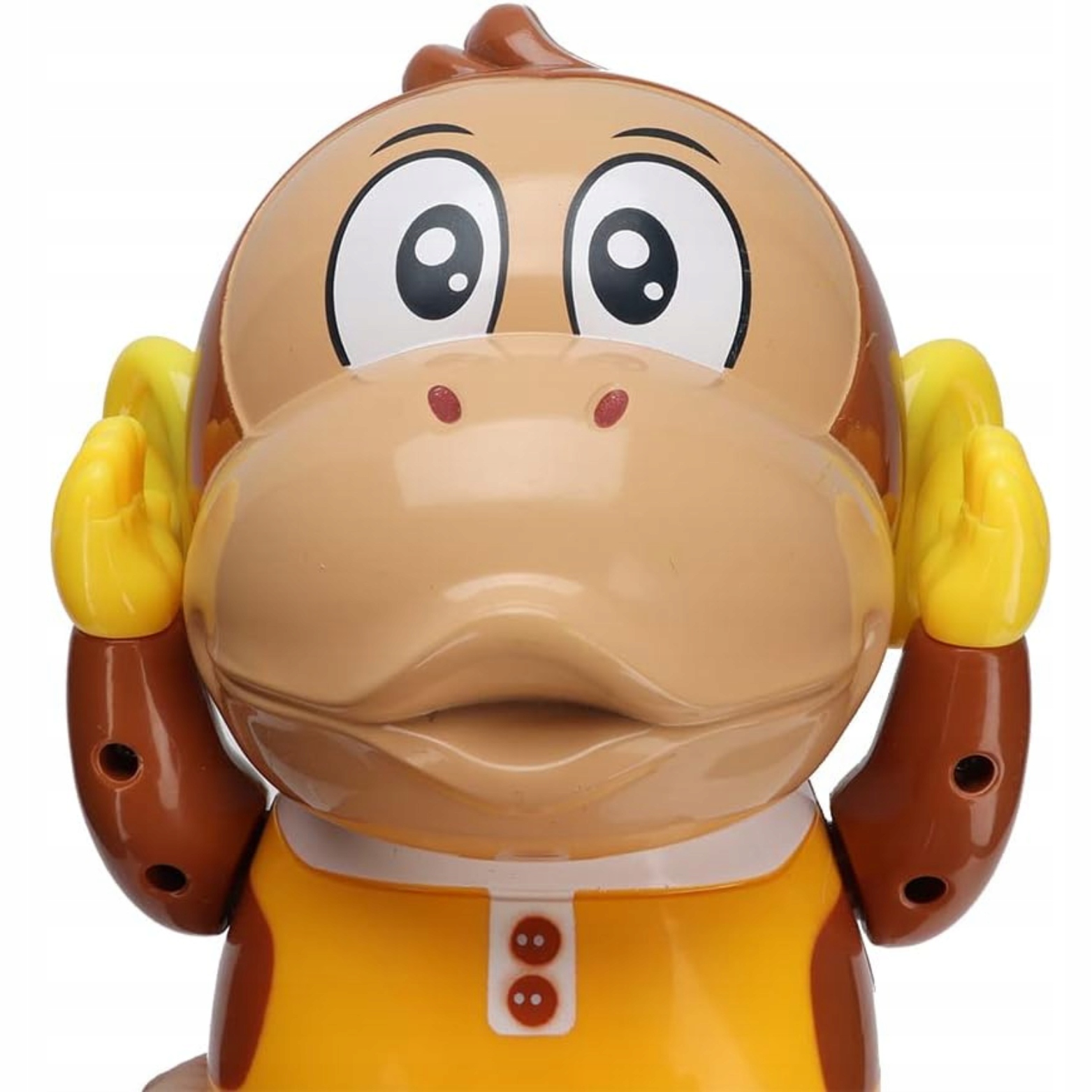 У мавпи рухливі лапи та ноги. Лапи та вушка підсвічуються різними кольорами, додаючи привабливості та стимулюючи почуття. Іграшка також має функцію відтворення музики під яку можна танцювати. Завдяки цьому дитина може весело провести час і в той же час розвивати моторику, танцюючи зі своїм супутником або слідуючи за ним, коли він віддаляється. Це незвичайна іграшка, яка подарує багато радості та посмішок кожному малюку та захопить його надовго. Ідеальний друг для малюків, які люблять музику та рух.