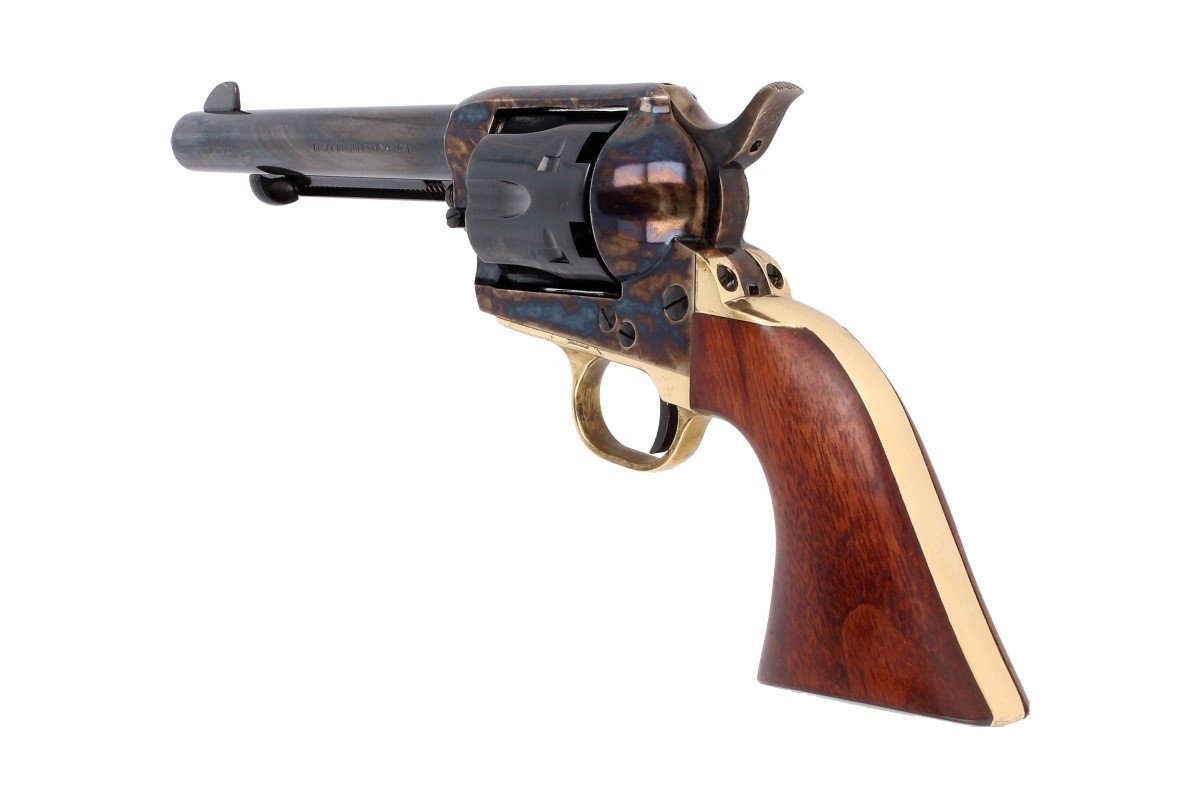 1873 Single Action Army .44 це найвідоміший револьвер Samuel Colt, відомий як Peacemaker - револьвер, який завоював Старий Захід. Шестизарядний ударний револьвер з чорним порохом калібру .44, дульнозарядний пристрій із закритою сталевою рамою. Стовбур діаметром 5,5 дюймів - зручний для швидкої стрільби на середньому рівні відстані.