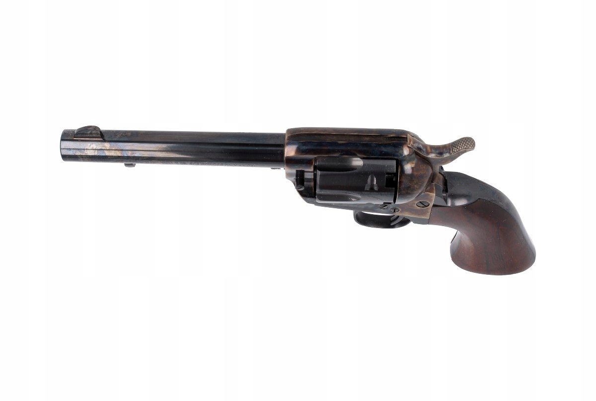 1873 Single Action Army .44 це найвідоміший револьвер Samuel Colt, відомий як Peacemaker - револьвер, який завоював Старий Захід. Шестизарядний ударний револьвер з чорним порохом калібру .44, дульнозарядний пристрій із закритою сталевою рамою. Стовбур діаметром 5,5 дюймів - зручний для швидкої стрільби на середньому рівні відстані.