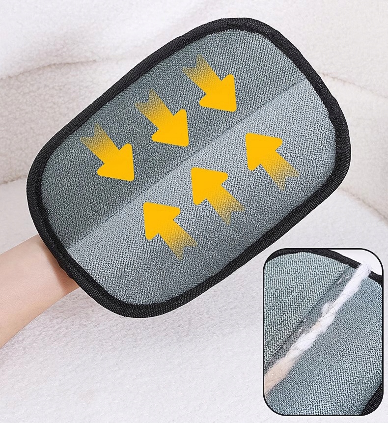 - Ефективне видалення волосся на тваринах: рукавичка для видалення волосся на тваринах використовує статичну електрику та унікальну структуру для вільного збору хутра тварин. Попрощайтеся з липкими роликами за пухами та неефективними пензликами - ця рукавичка проста у використанні та дуже ефективна для вилучення волосся на тваринах з одягу, меблів і не лише