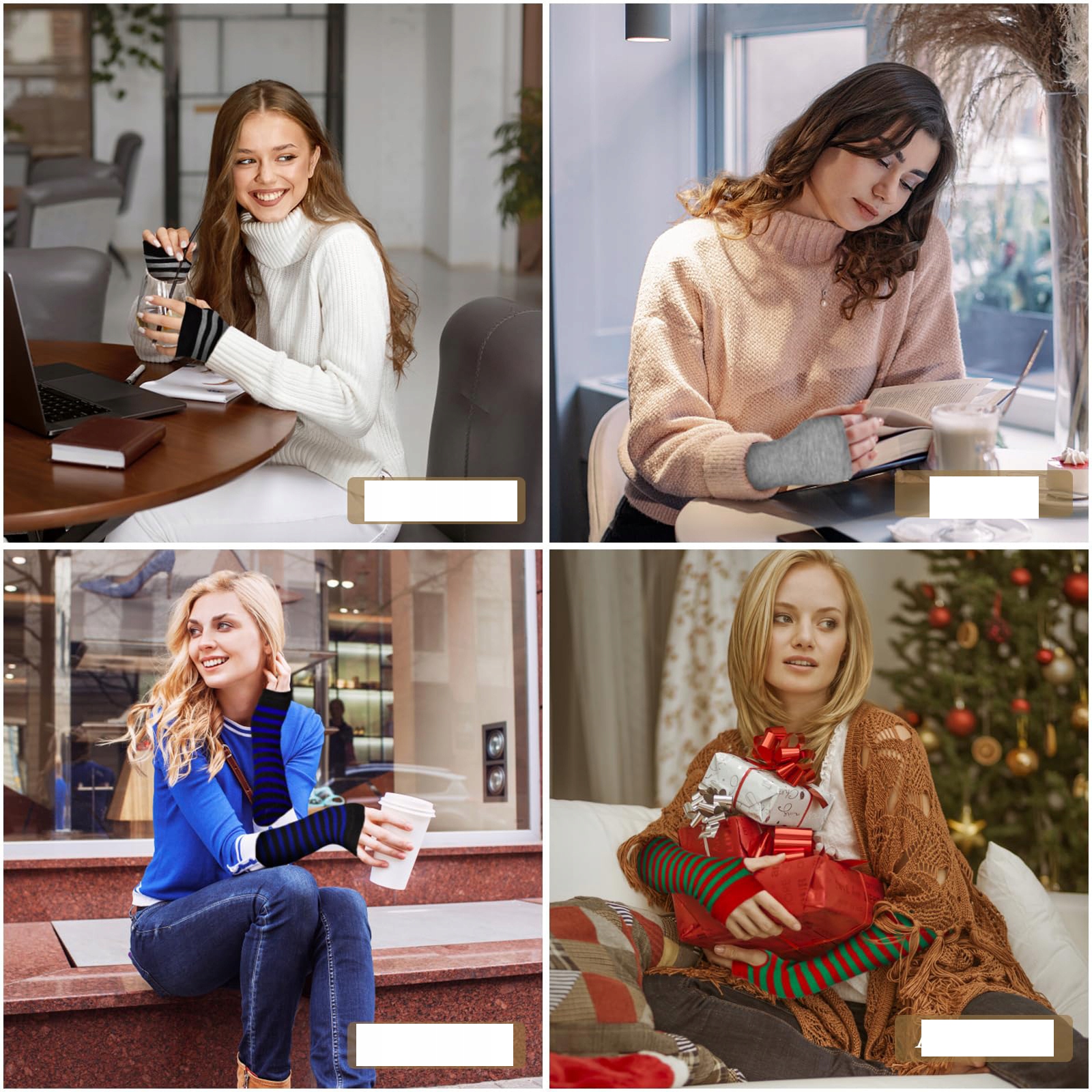 Рукавички без пальців Жінки довгих сірий смугастий чорний, лікоть 4пар