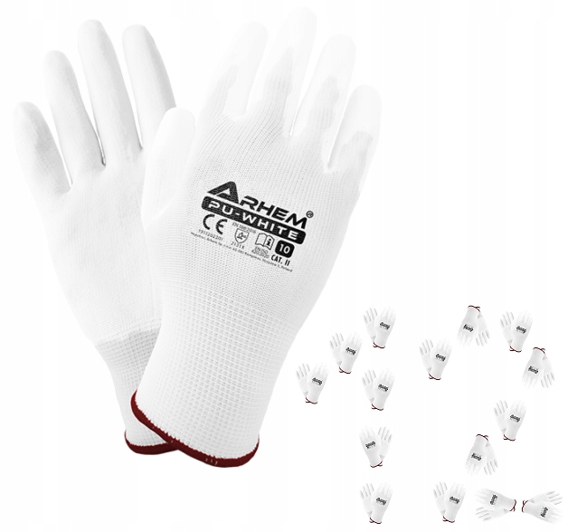 Робочі захисні рукавички, білий поліестер, покриті рукояткою білим поліуретаном.