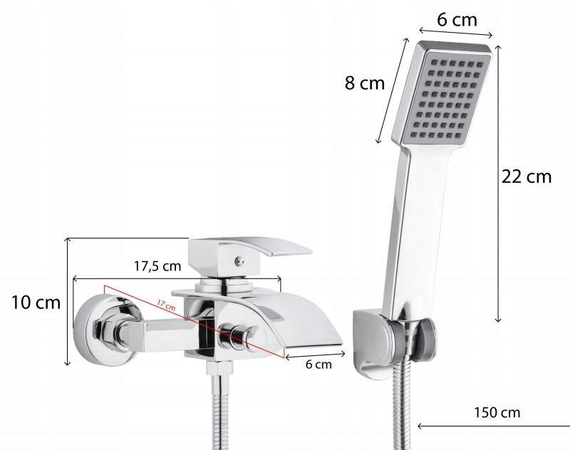 - душовий набір із душовою лійкою, настінним тримачем і шлангом довжиною 150 см із з’єднанням 1/2 дюйма.