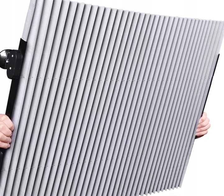 - Ролетна штора складається і розкладається як гармошка, що дозволяє легко підлаштувати її під вікна різної ширини. Він повністю універсальний - підходить для будь-якого лобового скла в усіх транспортних засобах.