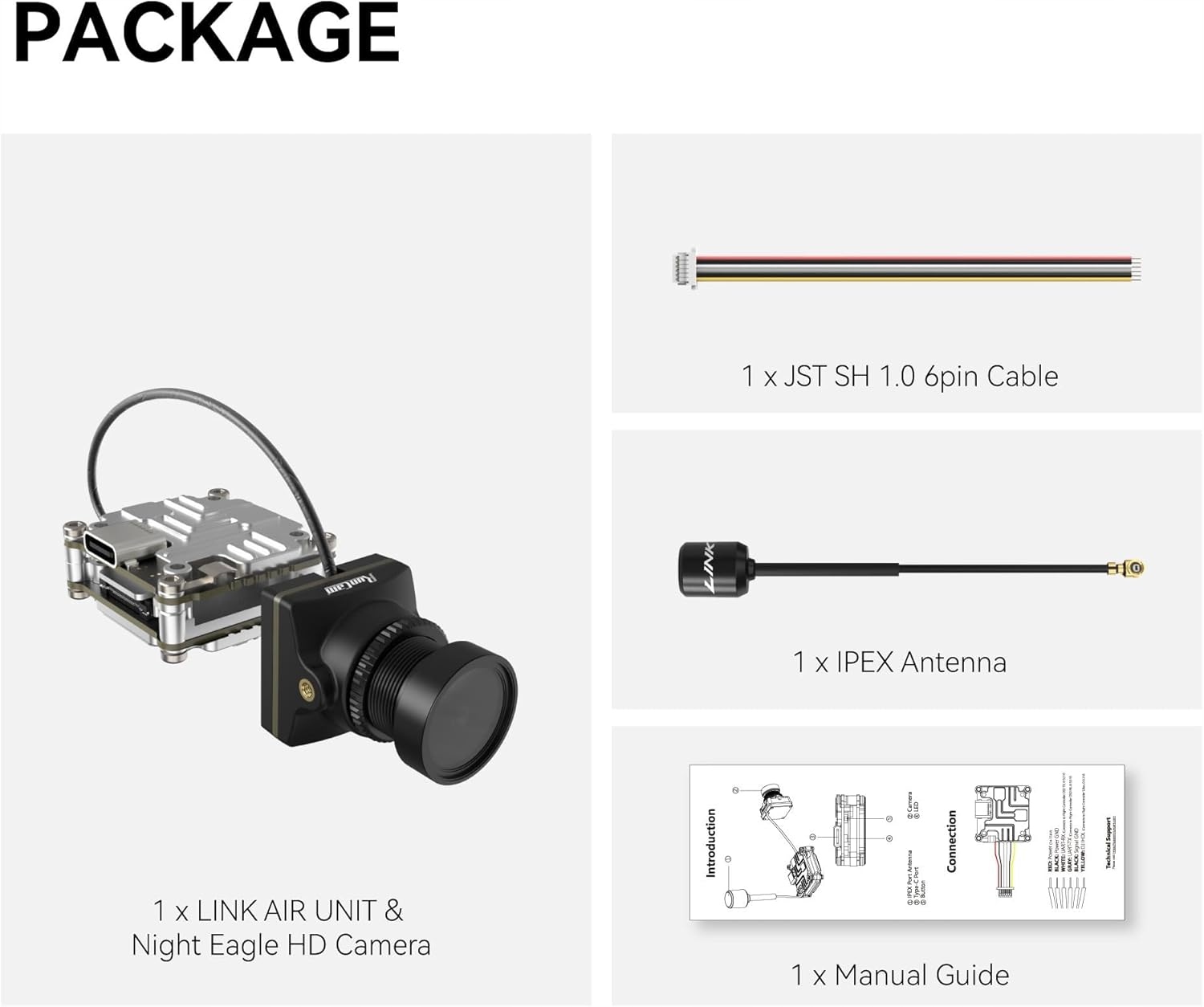 Kit Runcam Night Eagle HD - це вдосконалена система FPV, яка дозволяє насолоджуватися чудовою якістю зображення навіть вночі. Нічна камера Eagle HD пропонує роздільну здатність 720p при 60 кадрів в секунду, що гарантує рідкі та чіткі записи.