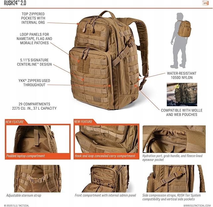 Рюкзак Rush24 ™ 2.0 37L - це сучасне рішення для людей, які цінують функціональність, силу та зручність під час повсякденних подорожей або експедицій.