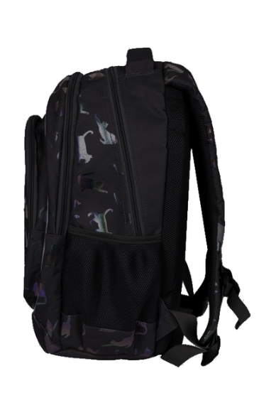Чорний рюкзак Hash із трьома відділеннями та привабливим принтом із зображенням неонових котів. Завдяки голографічній технології кожна дівчина виділятиметься в шкільних коридорах. Рюкзак Hash має три функціональні відділення, оснащені практичною кишенею і органайзером для дрібниць. Він використовує новітню технологію Ergo Back, яка мінімізує тиск на плечі та хребет і забезпечує комфорт дитини