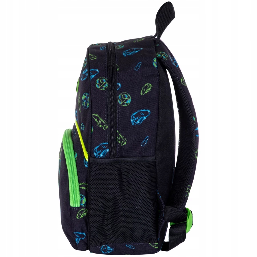 Рюкзак Astrabag з одним відділенням – це задоволення для всіх футбольних уболівальників. Динамічна геометрична графіка, яка показує футболіста за мить до удару по м'ячу, і численні піктограми привертають увагу кожного шанувальника цього найпопулярнішого виду спорту. В одному місткому відділенні помістяться необхідні речі для кожного малюка. Дві бічні сітки ідеально підходять для зберігання пляшки з водою. Рюкзак має світловідбиваючі елементи, що забезпечують безпеку.