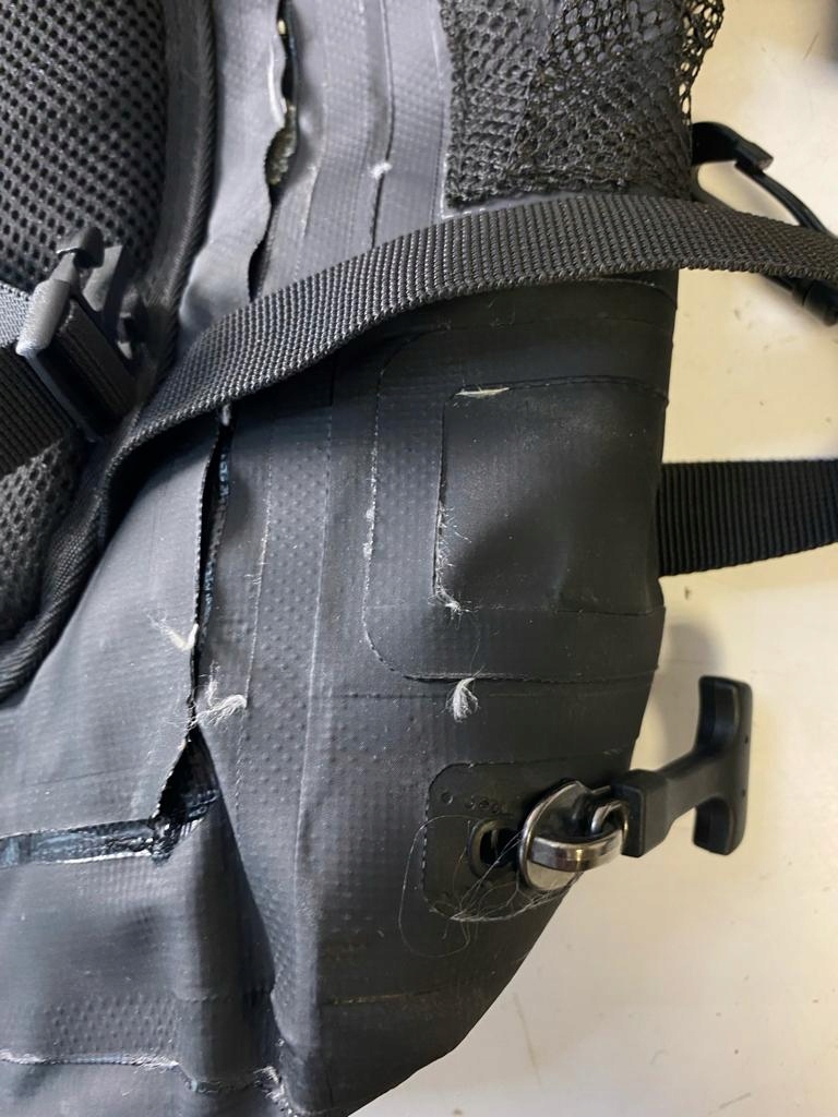 - Оснащений водонепроникною блискавкою, м’якими плечовими ременями, спинкою та боковою сітчастою кишенею