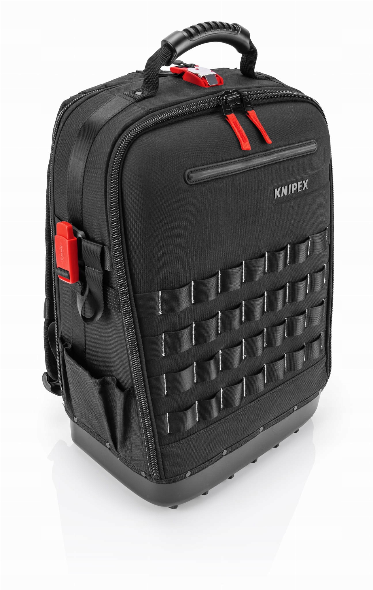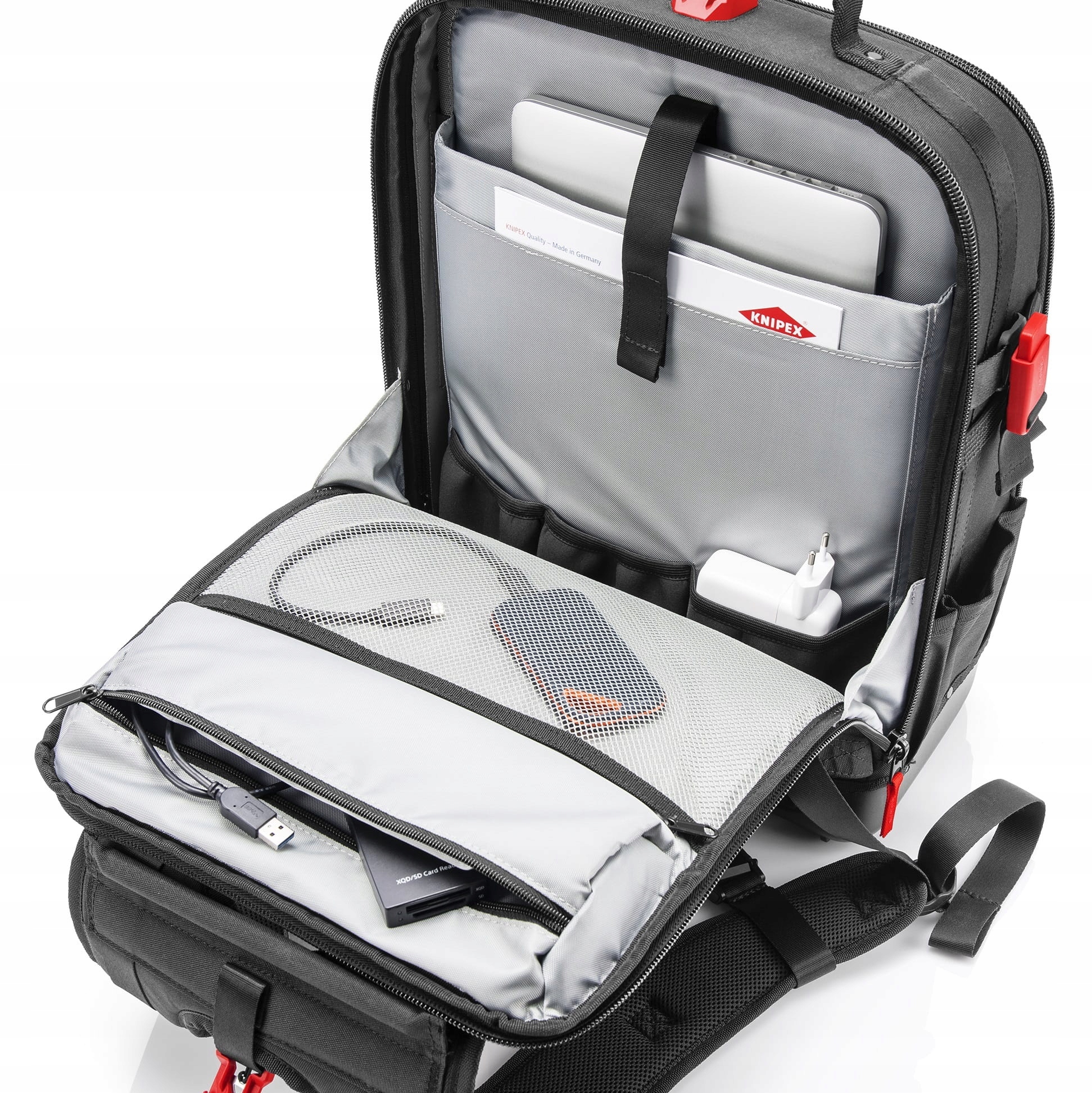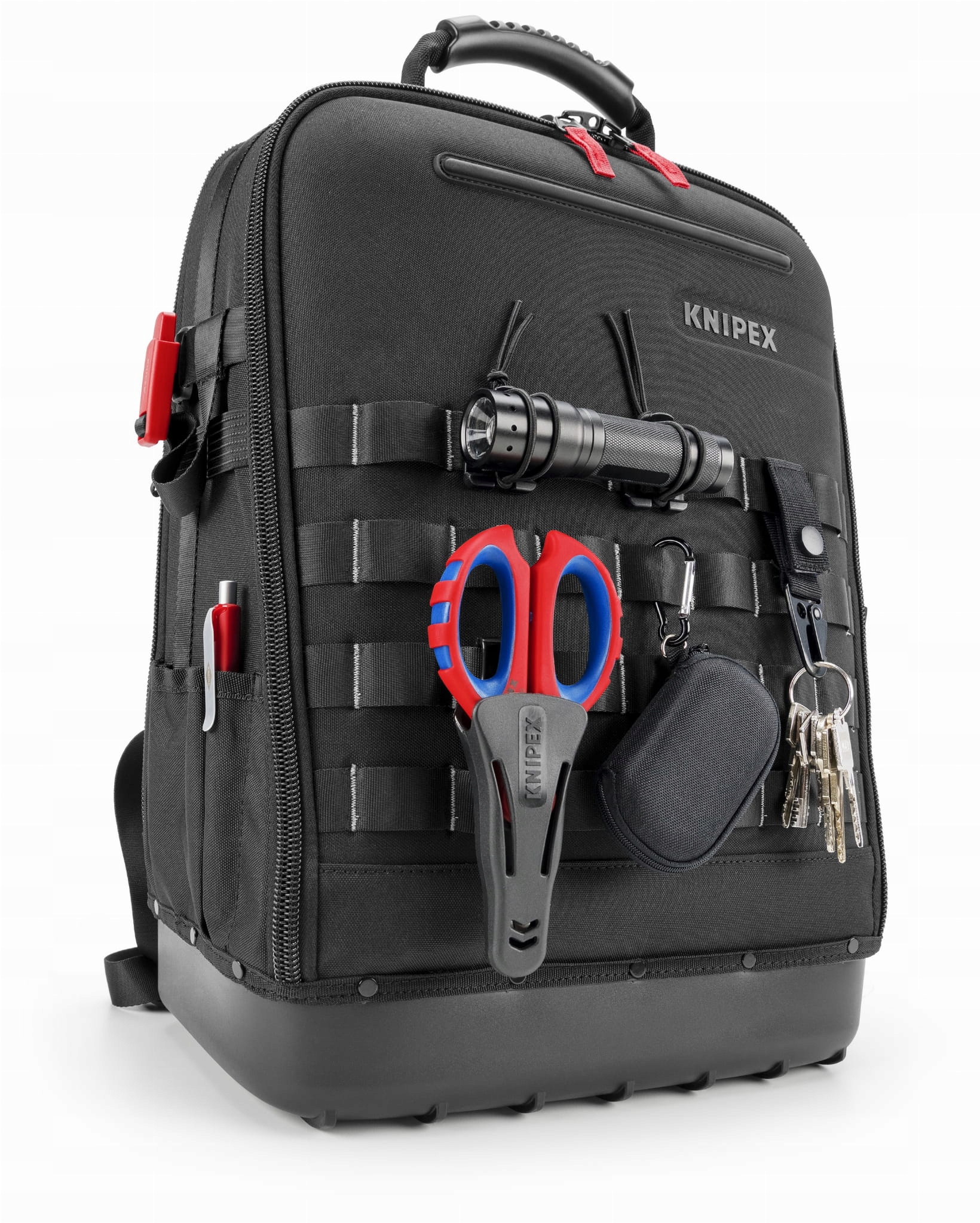 Рюкзак для інструментів Knipex Modular X18 - це функціональне та зручне рішення, яке ідеально відповідає різноманітним потребам користувачів. Оснащений передньою і задньою частинами, що повністю відкидаються, знімною пластиною для інструментів і м’якою спинкою, він забезпечує високий комфорт при носінні. Інноваційні з’єднувачі FIDLOCK® і система лямок MOLLE пропонують гнучкість, дозволяючи адаптувати рюкзак до ваших індивідуальних вимог. Два окремих внутрішніх відділення ідеально підходять для зберігання інструментів, вимірювальних приладів, ноутбуків або планшетів. Рюкзак для інструментів має максимальну вантажопідйомність 15 кг і об'єм 18 літрів. Виготовлений із міцної переробленої тканини, він захищений від бризок і легко чиститься. Водонепроникне пластикове дно забезпечує стабільність як у відкритому, так і в закритому положенні. Рюкзак оснащений одним ременем MOLLE всередині та чотирма ремінцями MOLLE зовні для кріплення адаптерів, карабінів та аксесуарів. Загалом він пропонує 21 петлю для кріплення та 37 кишень, деякі з яких застібаються на блискавку. Додатково рюкзак має багажний ремінь для кріплення до телескопічних ручок ящиків для інструментів. Вибираючи рюкзак для інструментів Knipex Modular X18, ви можете бути впевнені у високій якості, зручності та ефективності організації та зберігання інструментів. Рюкзак поставляється без інструментів.