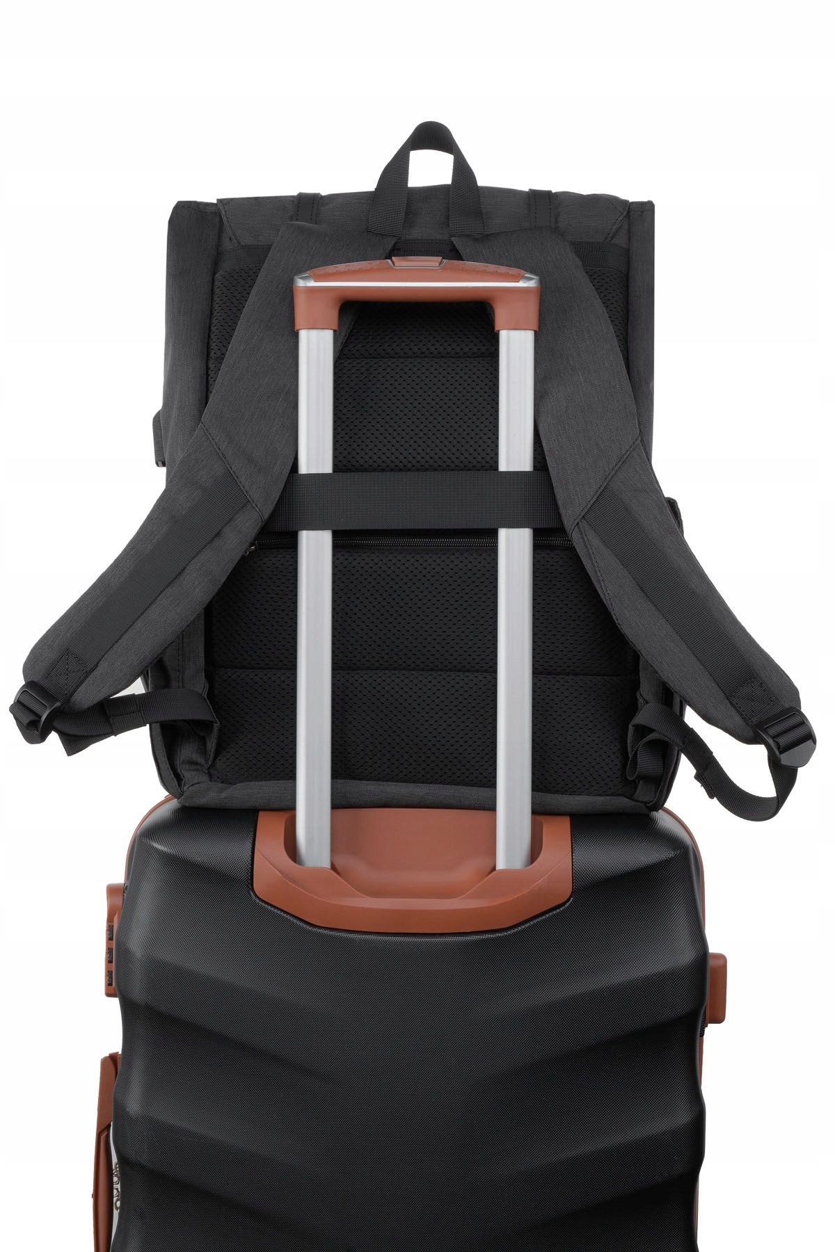елегантним, чорним, просторим міським рюкзаком розміром 40 х 30 х 16 см у чорному чорному кольорі, створеним з найменшою деталями. Ви обробляли задню частину валізи , ви комфортно вмикають, що вирушає в валізу , і комфортно . Замикання проти вибухів розміщено на задній частині гарантує безпеку найважливіших документів. Це ідеальне рішення для чоловіків, які зосереджуються на функціональності.